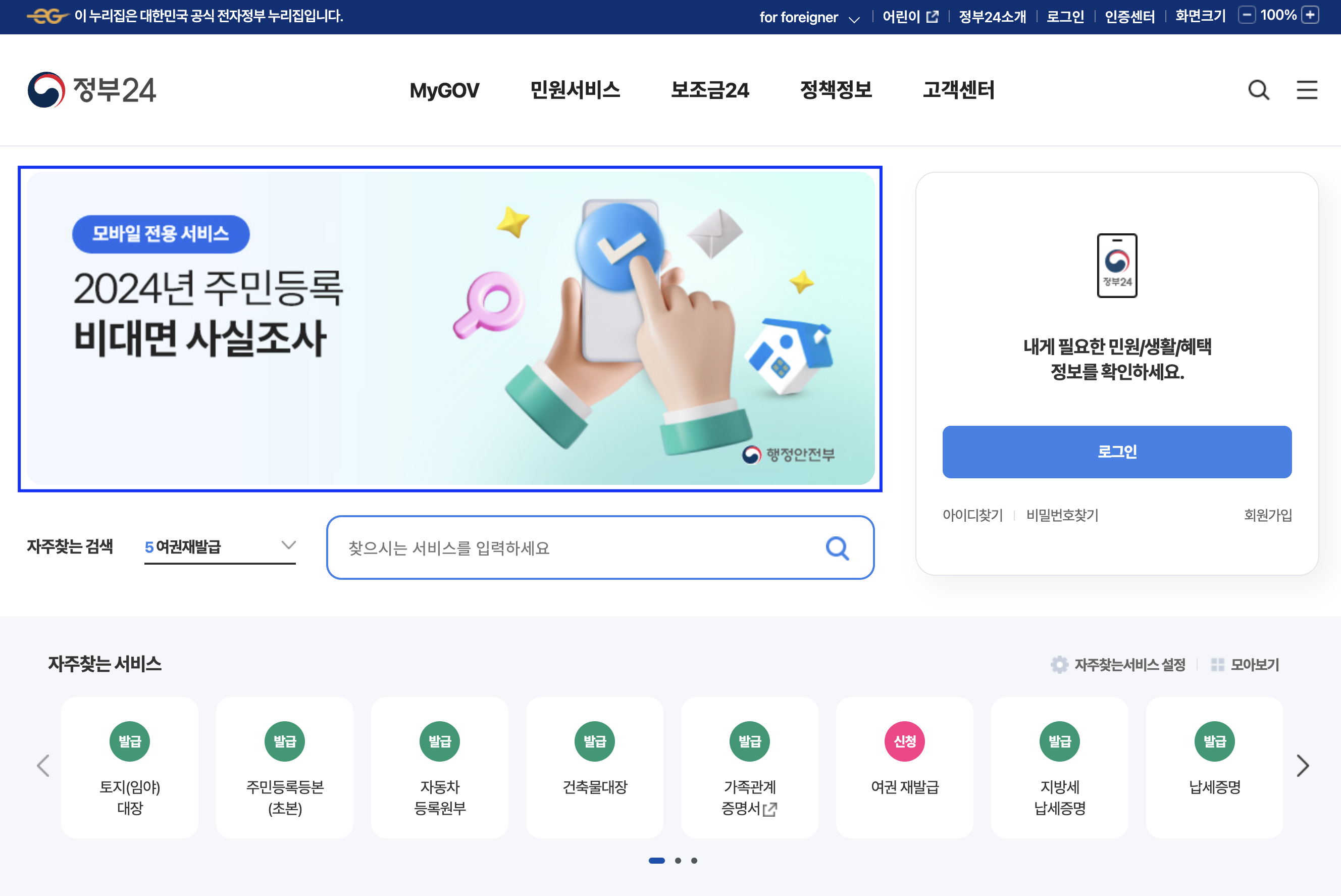 직접 방문은 싫어서(?) 낼름 정부24 검색해서 들어가봤다.