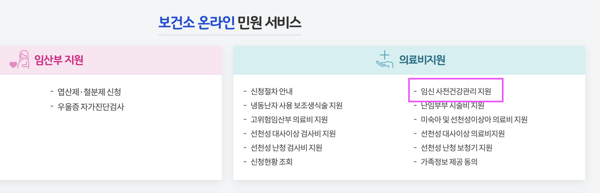 없으면 '임신 사전건강관리 지원' 으로 검색을 해도 된다.
